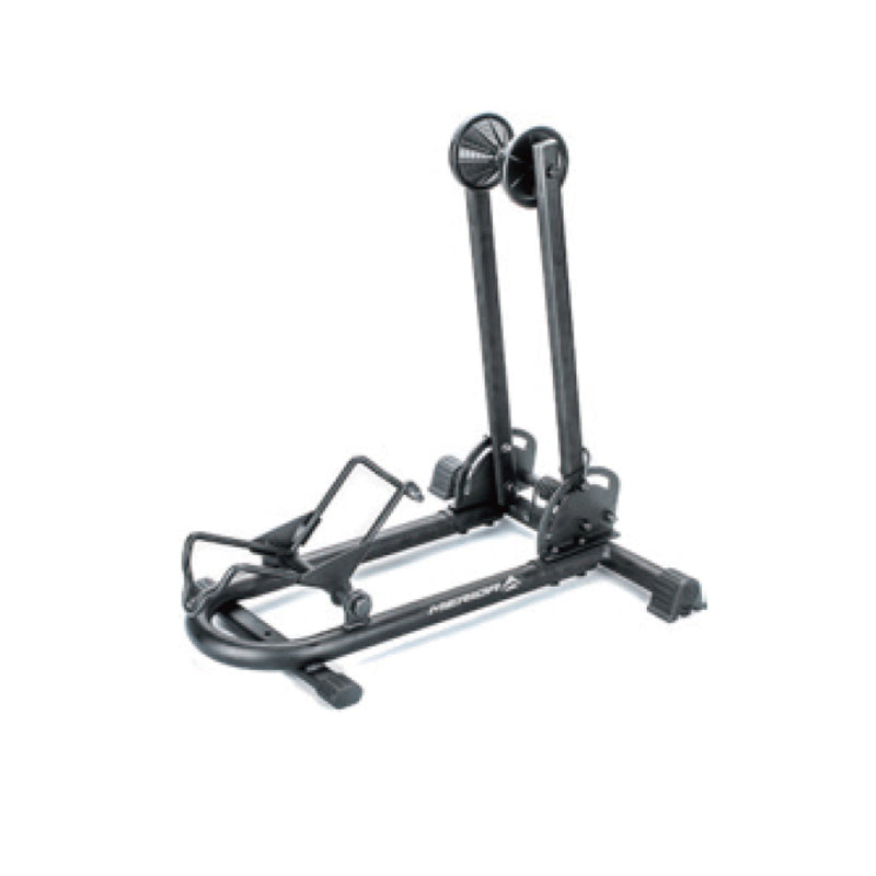 MERIDAのディスプレイスタンドは、前後輪どちらでも安定して保持できる実用的なスタンドです。