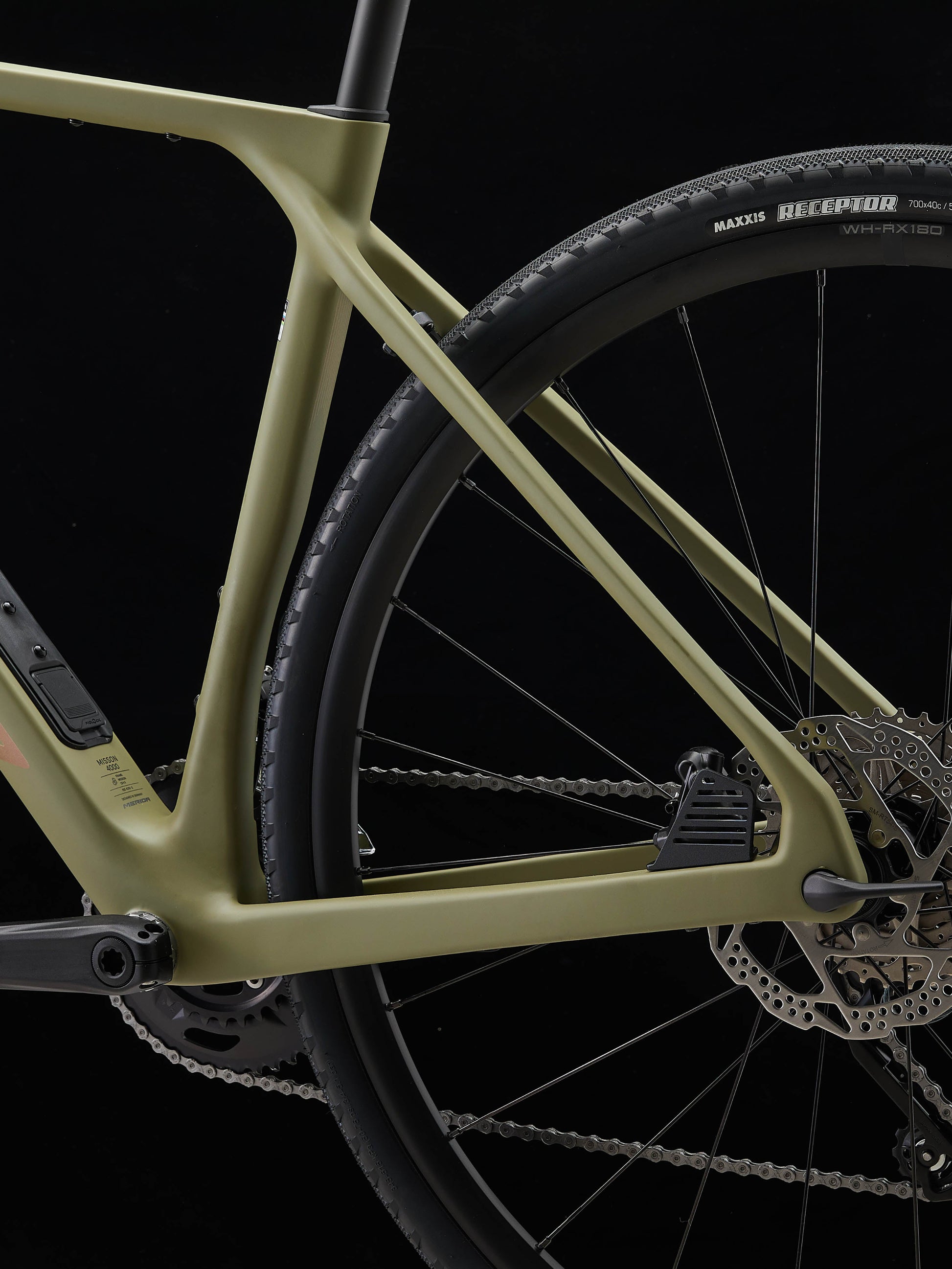 この40mmという数値は、高速オフロード走行に十分なクリアランスを確保しつつ、ロードレースバイクに通じるスリムで洗練されたシルエットを維持する、理想的なバランスだと私たちは考えています。