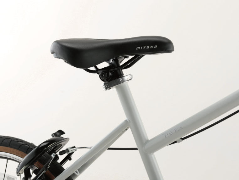 サドル後部には指を掛けられる樹脂パーツが内包されており、駐輪場からの移動や車体の向きを変える動作を容易にします。